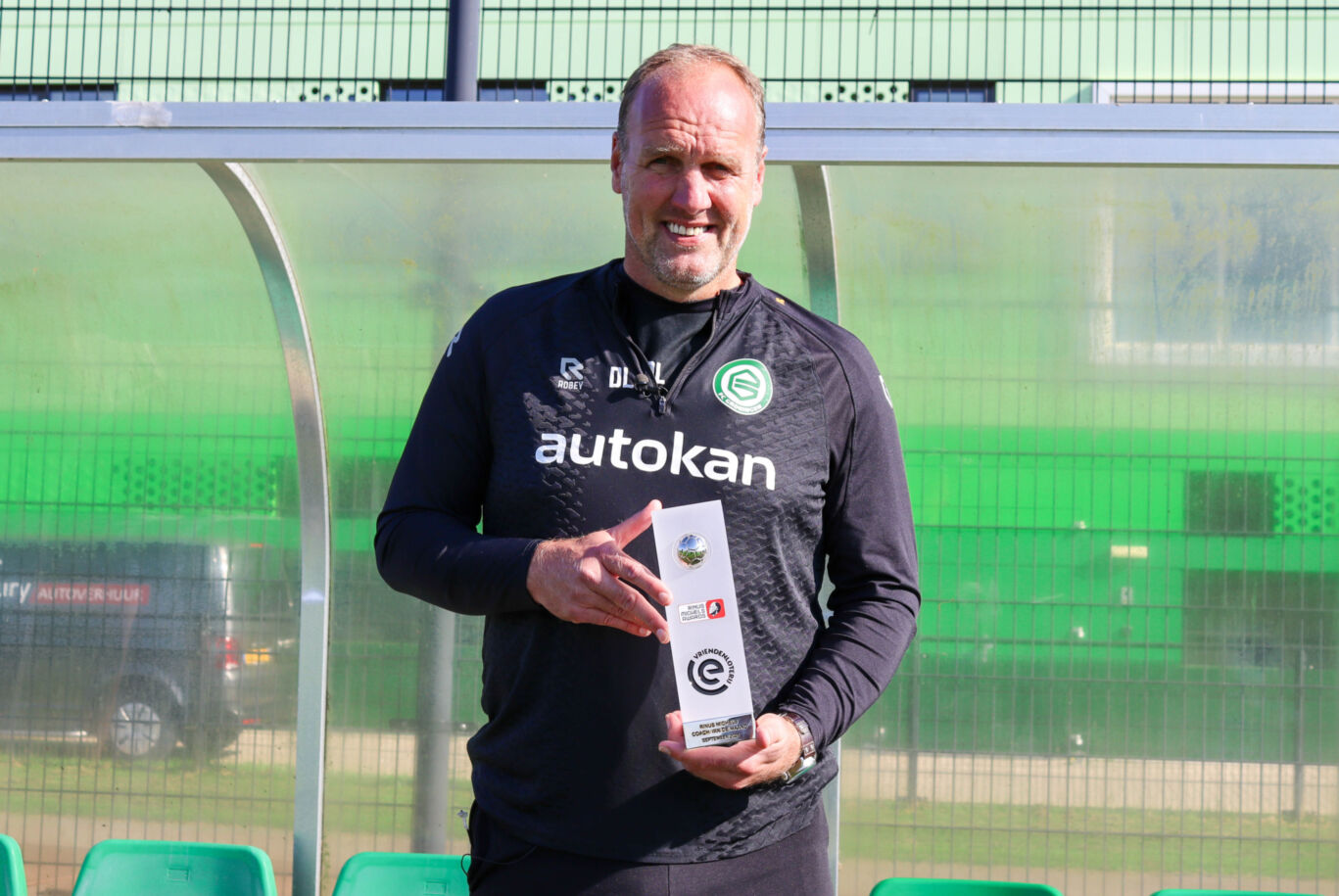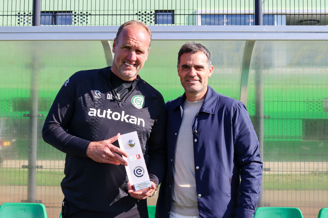 The Rinus Michels Manager of the Month award was presented by ESPN analyst Kenneth Perez. “This is the finest award I’ve ever received as a manager. I’m absolutely delighted with it, Kenneth,” said Lukkien. The Groningen boss relishes giving players structure and helping them improve. “I became a coach because I want to help people. Of course, there’s personal satisfaction in that too, as I feel I didn’t get enough out of my own playing career. I believe I have more to offer as a manager, and I want to make the most of that. I want to help players and create a clear, recognisable way of playing.”