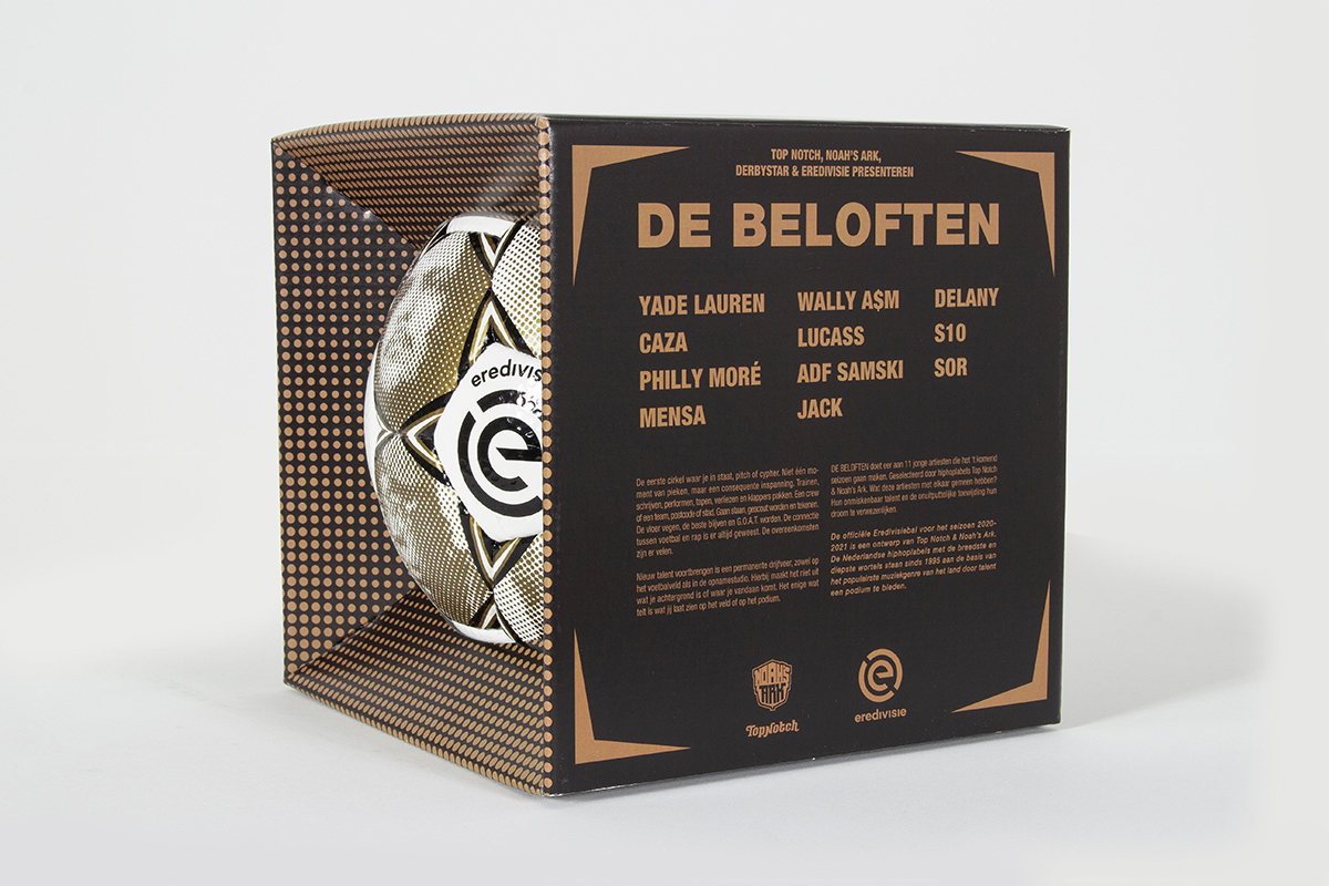 The ball, called 'De Beloften' (The Hot Prospects), features the portraits of Yade Lauren, S10, Delany, Mensa, Lucass, Philly More, Caza, Jack, Wally A$M, Sor and ADF Samski. "Every single one an artist who Top Notch and Noah's Ark believe will make it big in 2020/21," reveals Vincent Patty of Top Notch & Noah's Ark. "They all have their own style, sound, background and story, but also have one thing in common: Talent and the unshakeable dedication to making their dream come true."
